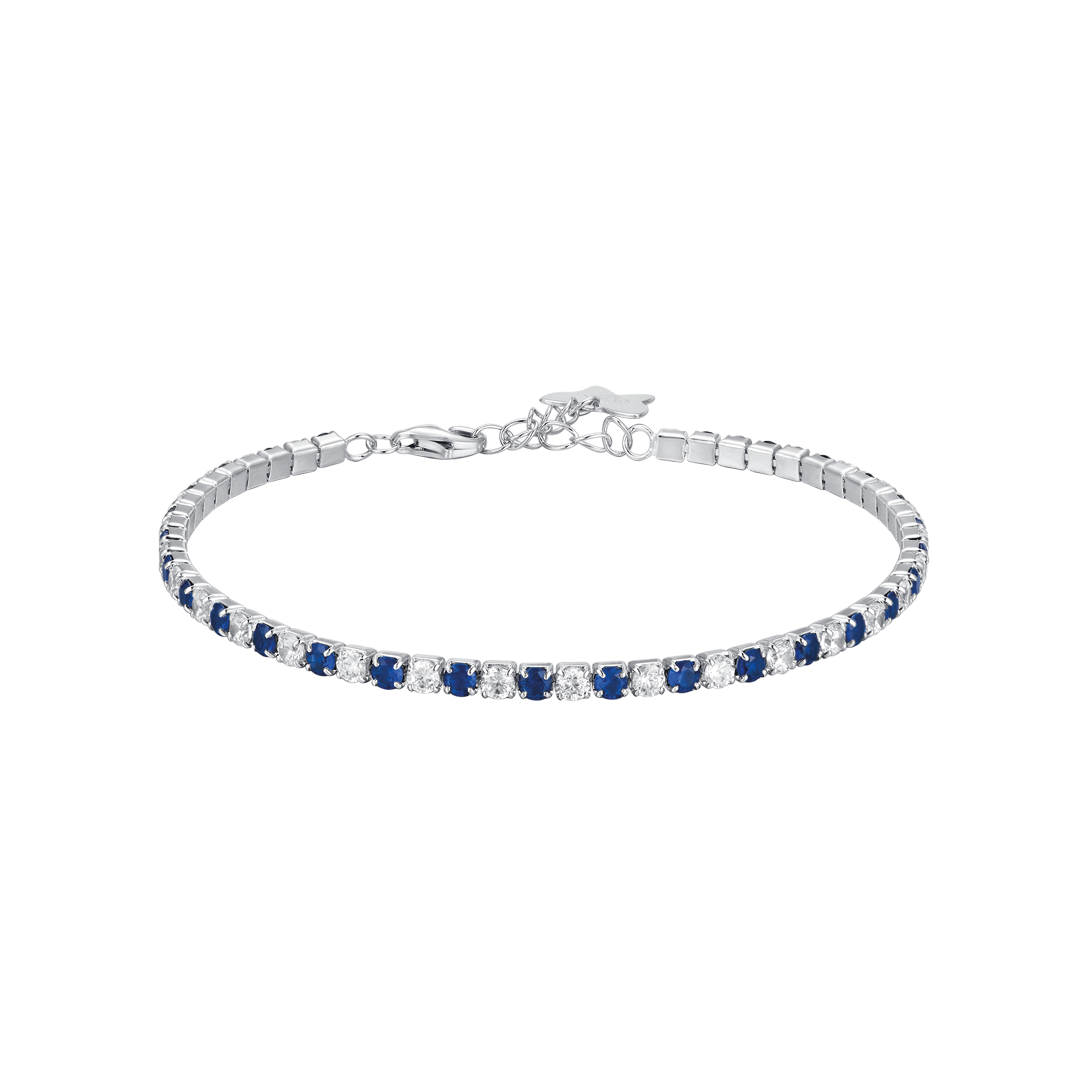 BRACCIALE TENNIS IN ARGENTO CON ZIRCONI BIANCHI E BLU