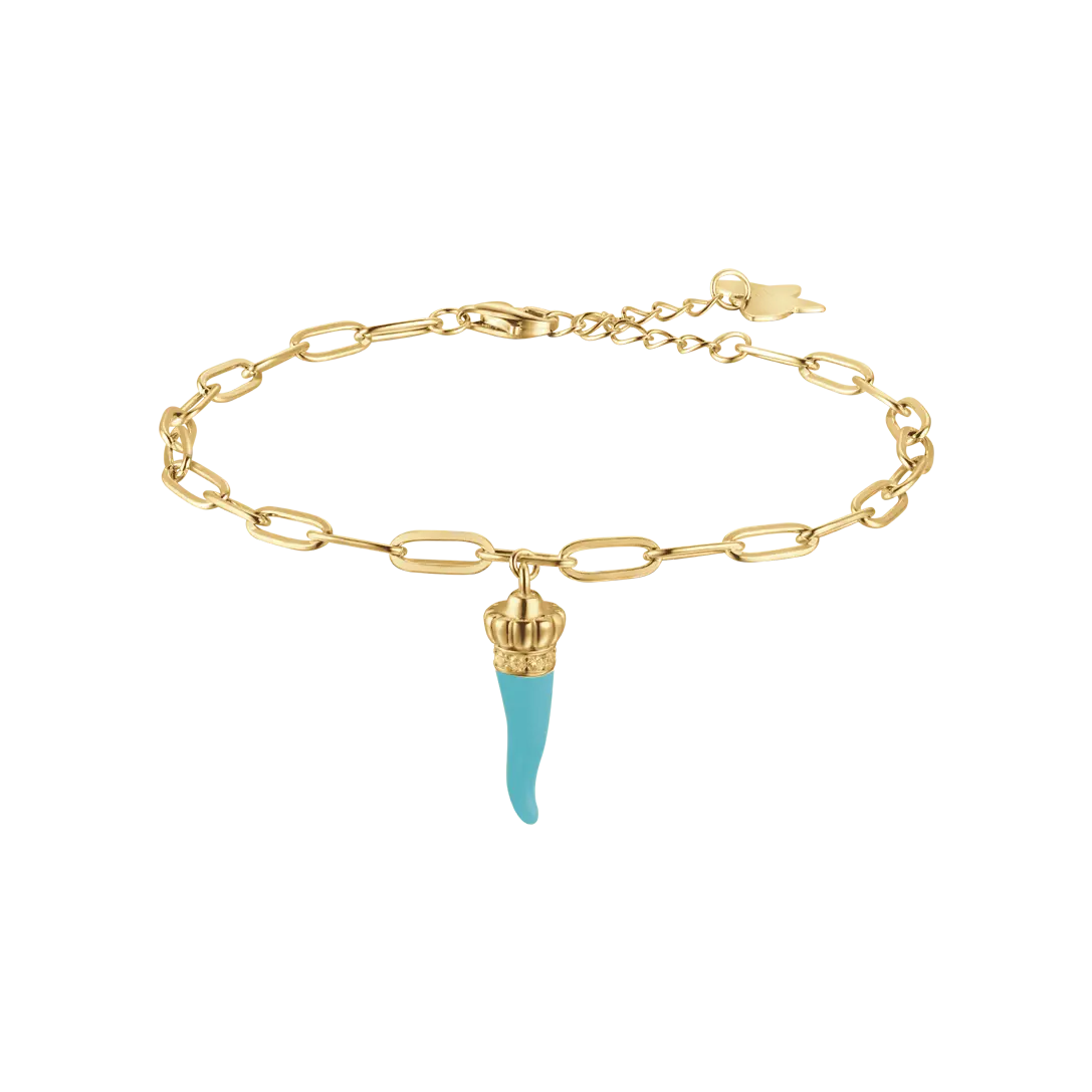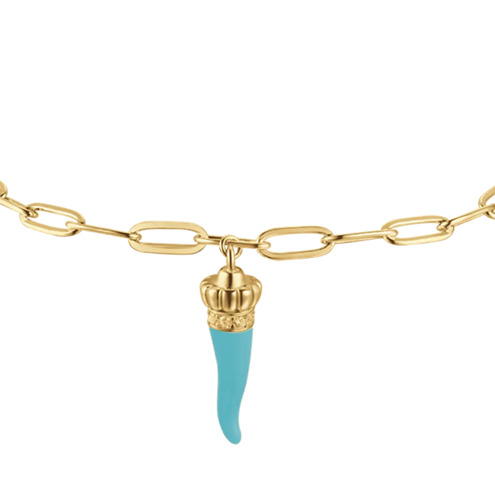 BRACCIALE IN ARGENTO IP GOLD CON CORNO TURCHESE E QUADRIFOGLIO