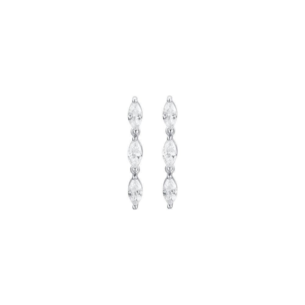 Orecchini in argento con zirconi bianchi. Questi orecchini pendenti in argento con zirconi bianchi sono una scelta di gioielli che incarna brillantezza e raffinatezza, grazie ai loro zirconi che catturano la luce in maniera stupefacente.