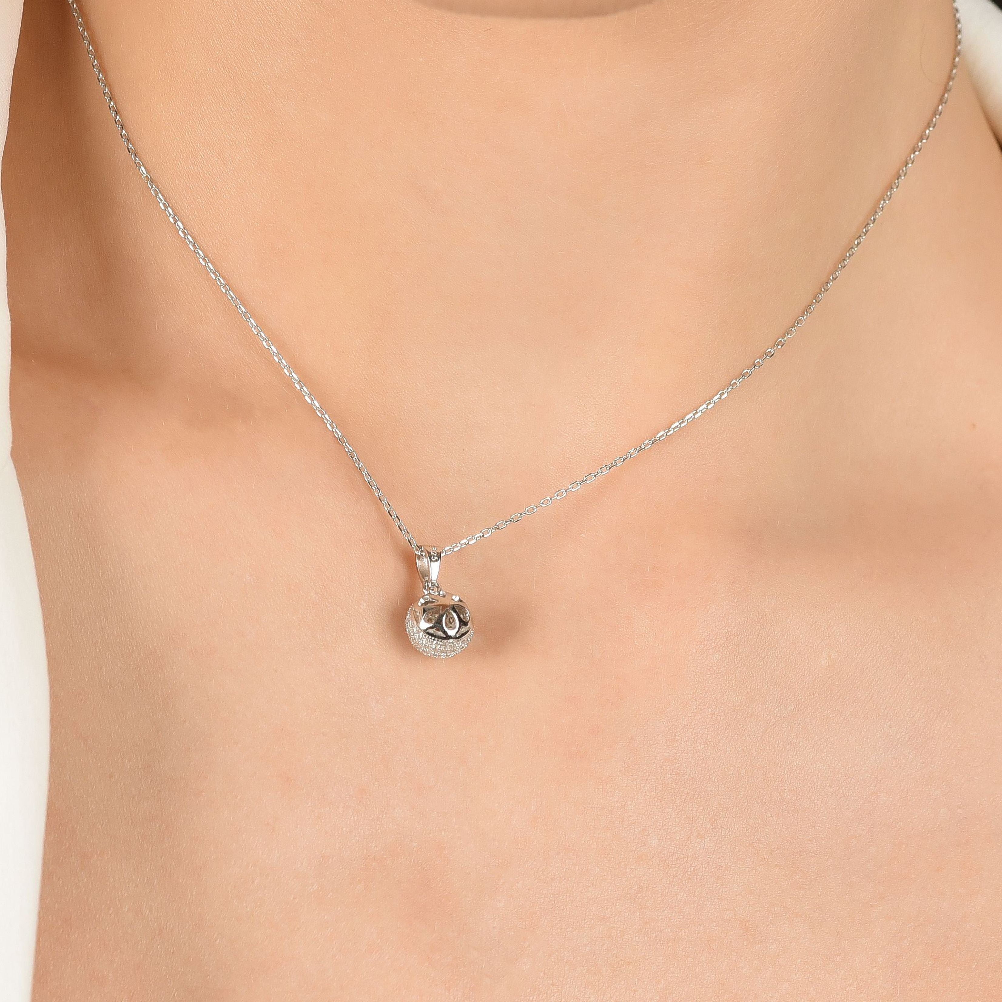 Collana in argento con sfera e zirconi