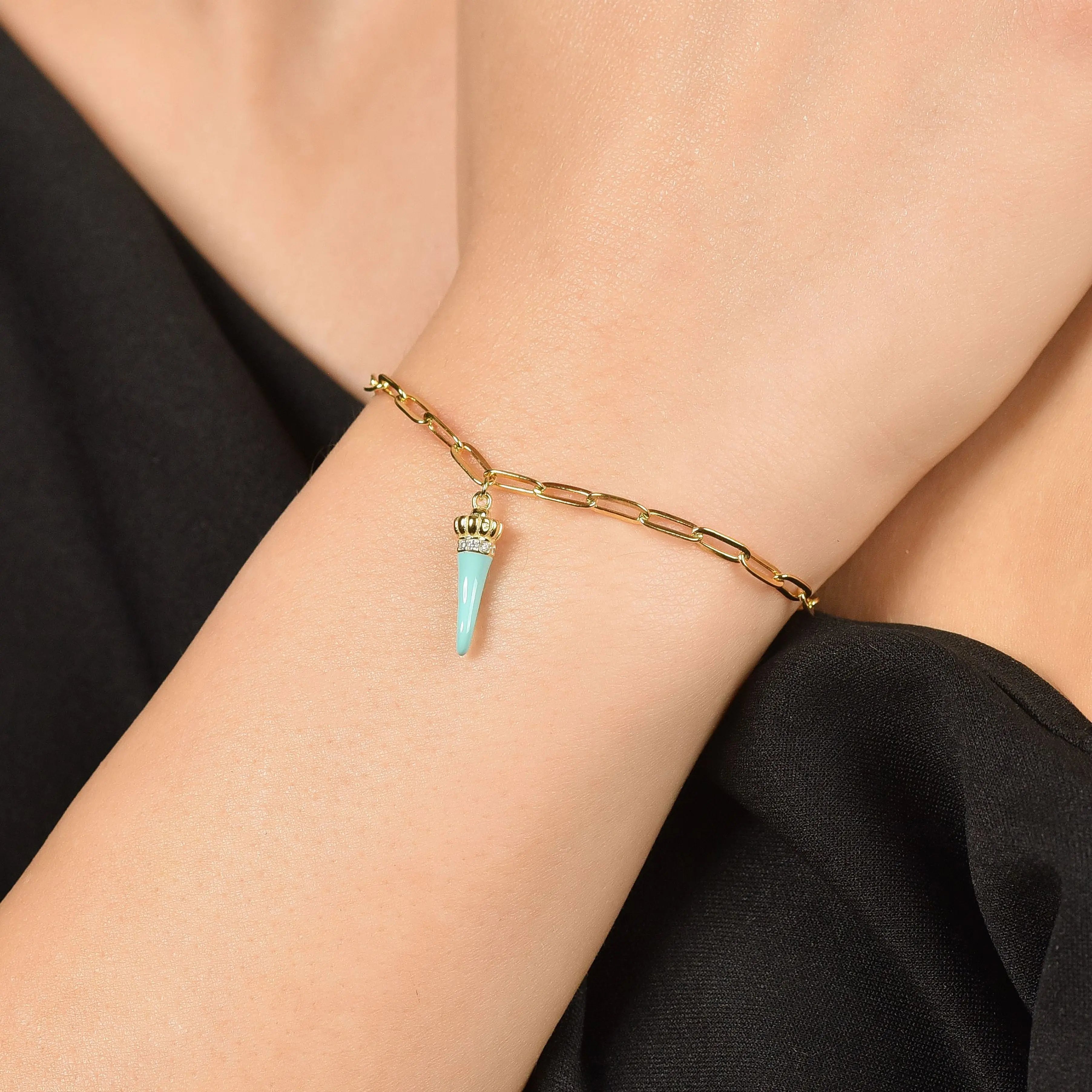 BRACCIALE IN ARGENTO IP GOLD CON CORNO TURCHESE E QUADRIFOGLIO