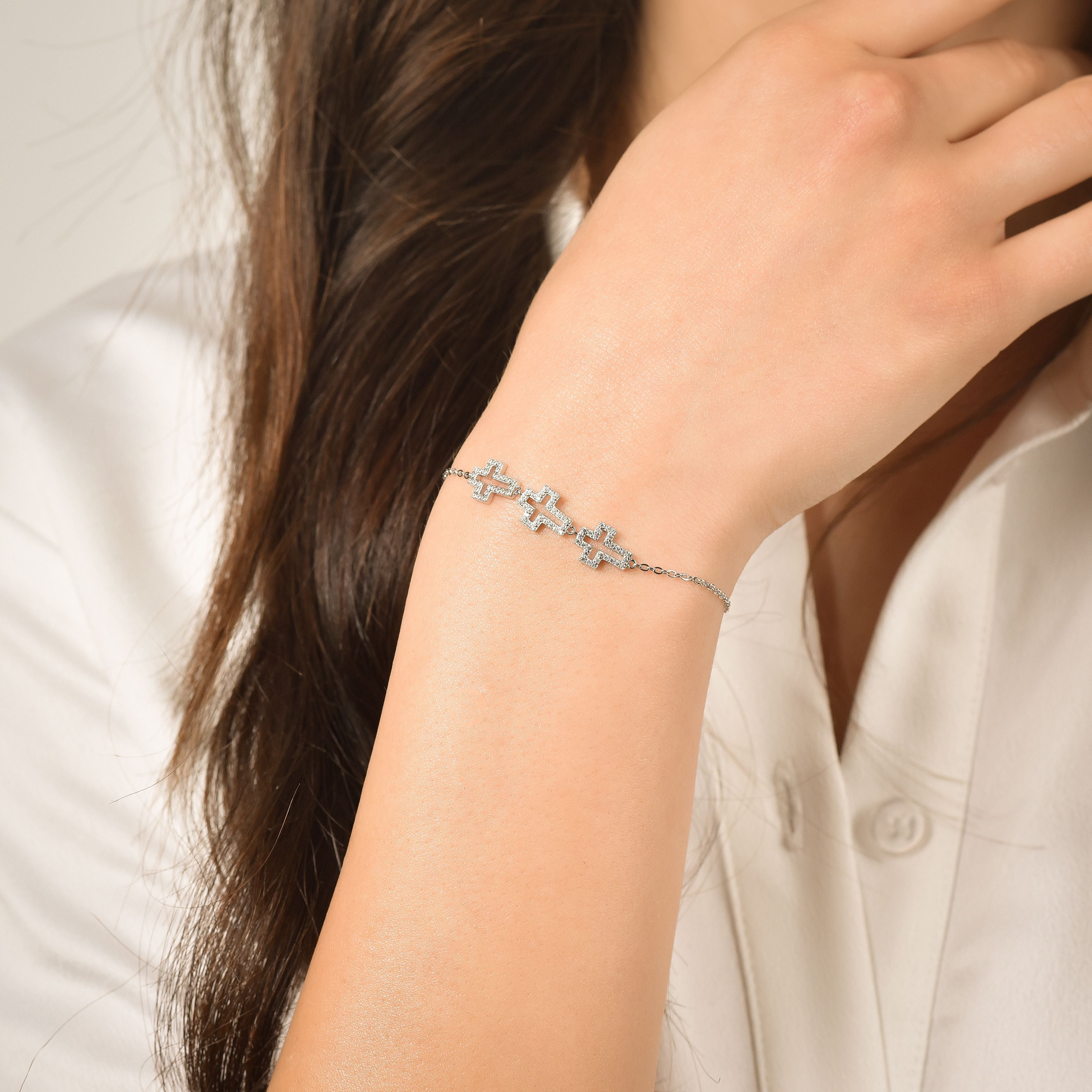 BRACCIALE IN ARGENTO CON CROCI CON CRISTALLI BIANCHI