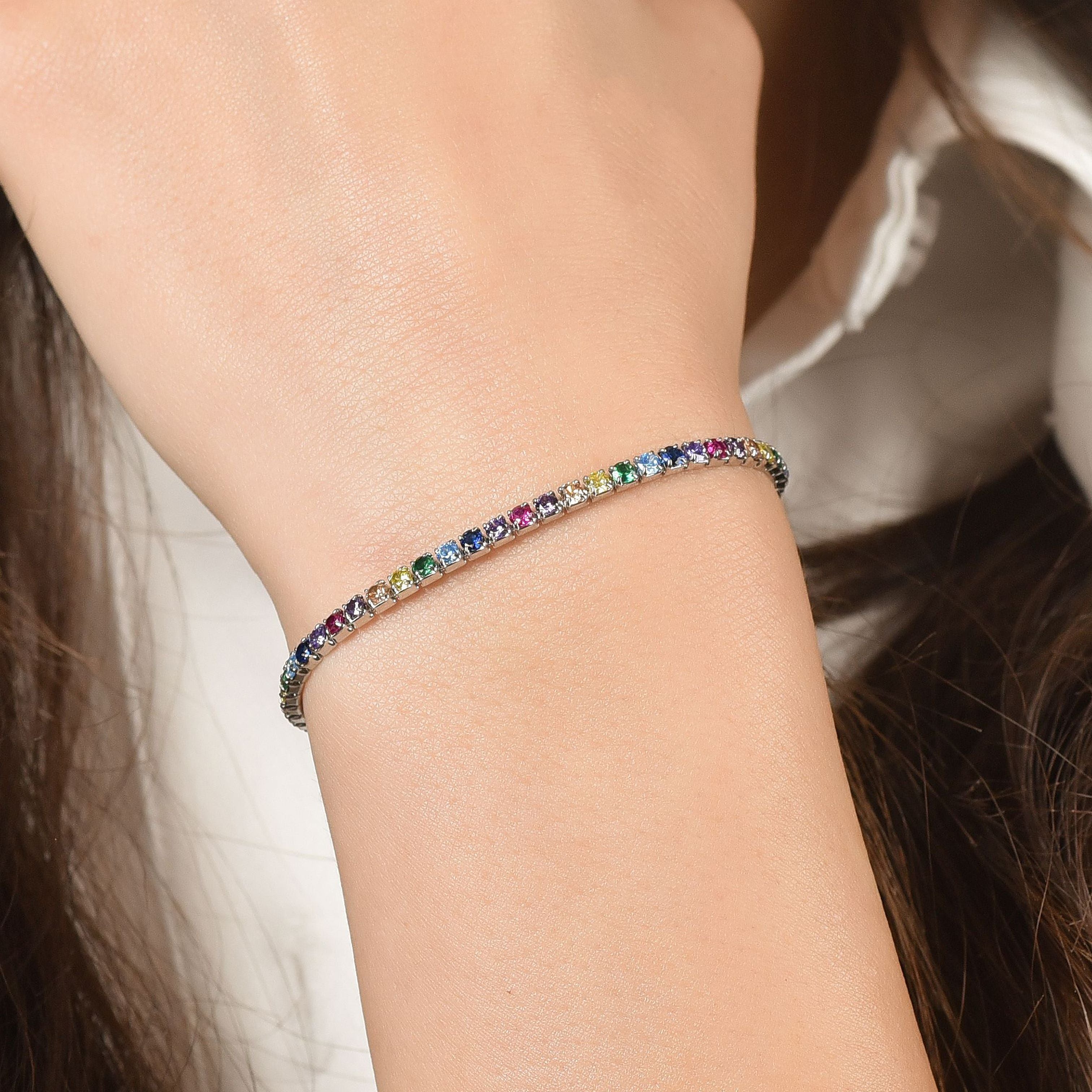 BRACCIALE TENNIS IN ARGENTO CON ZIRCONI MULTICOLOR