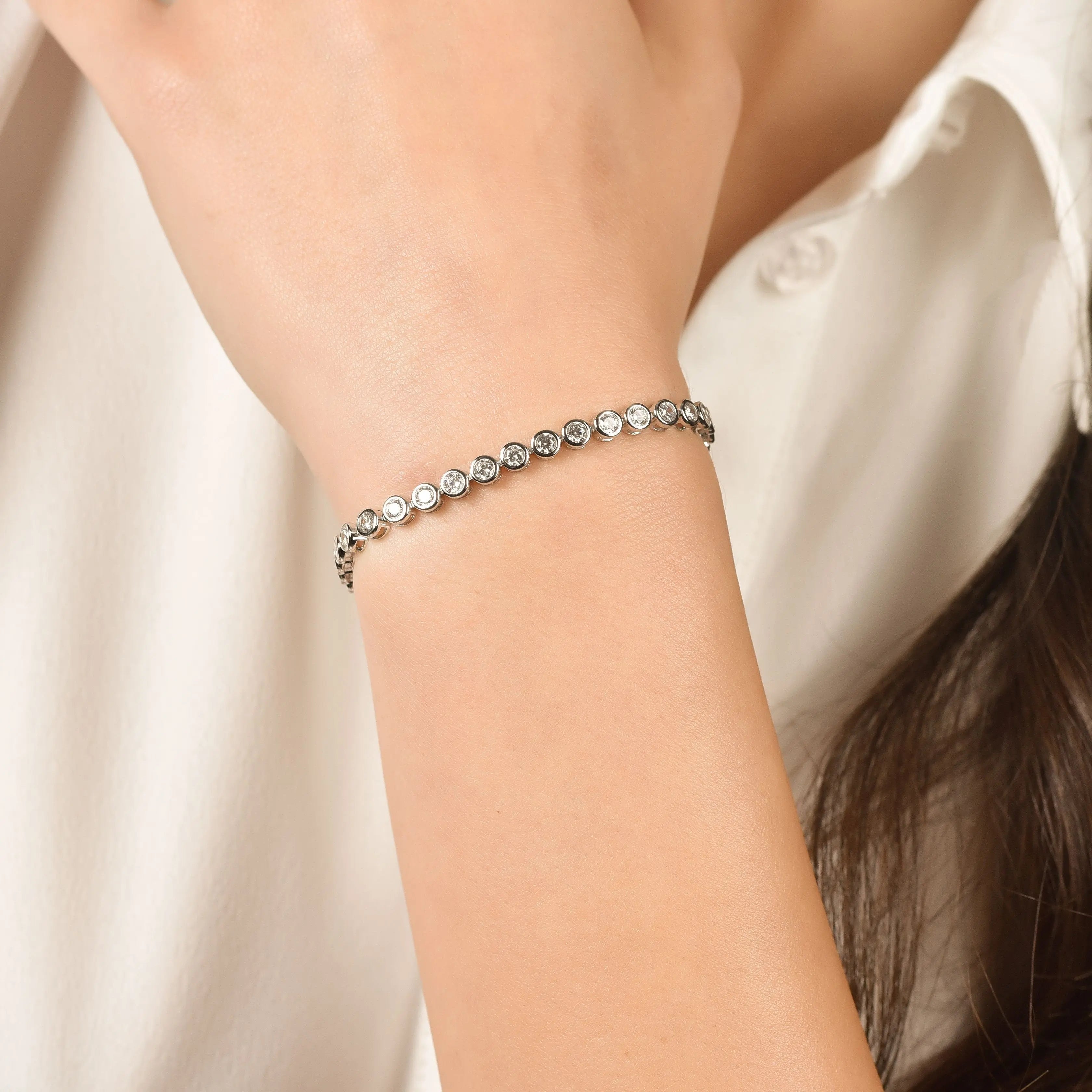 Bracciale tennis in argento con cristalli tondi