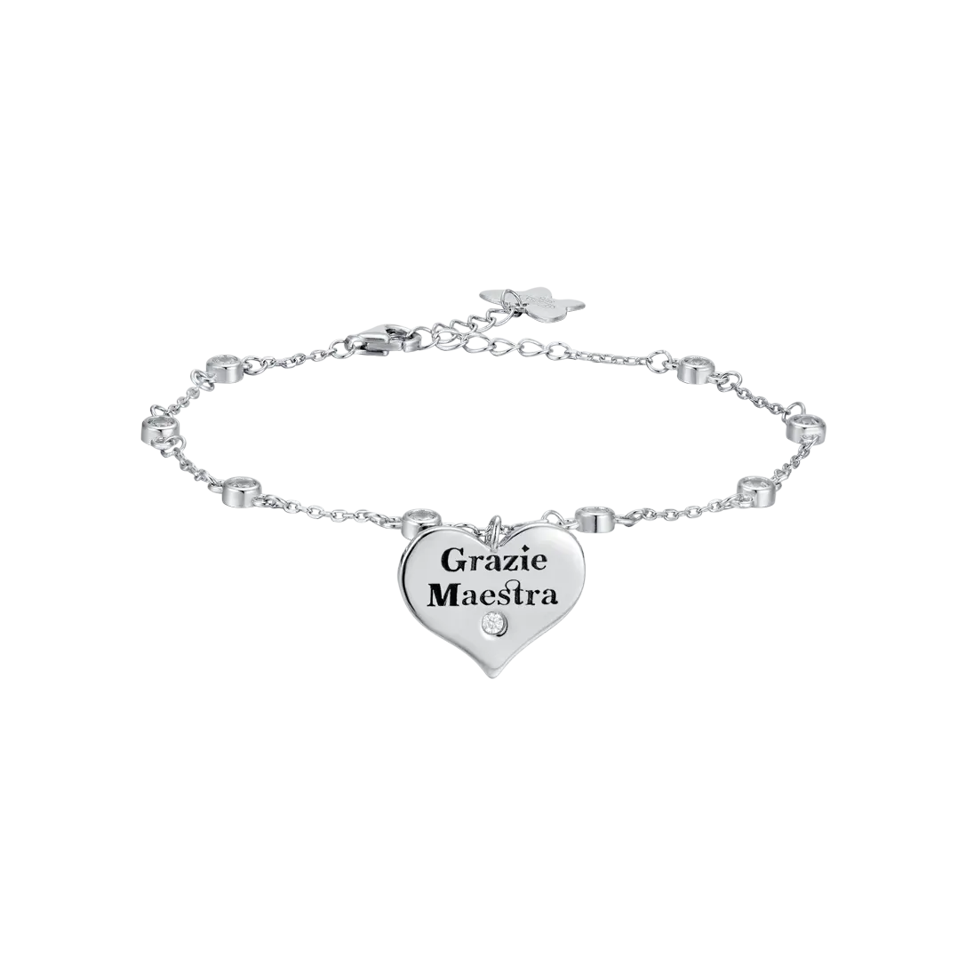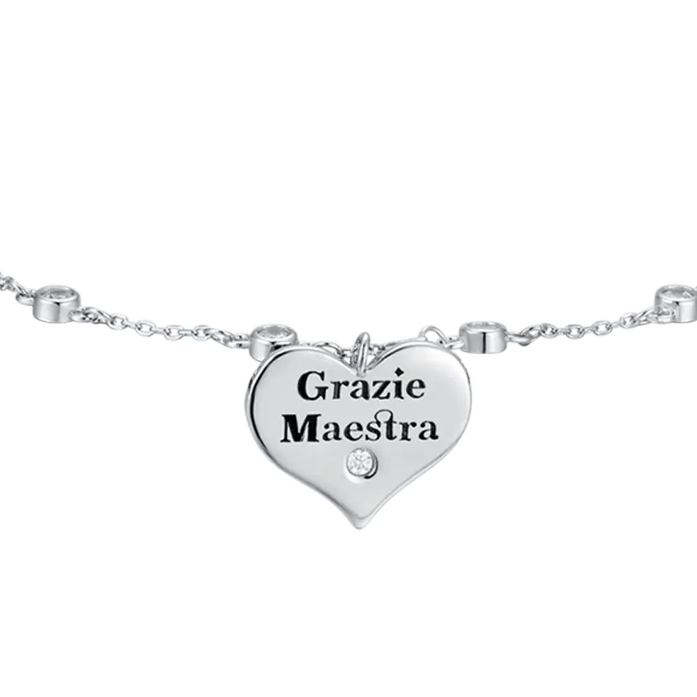 BRACCIALE IN ARGENTO CON CUORE GRAZIE MAESTRA