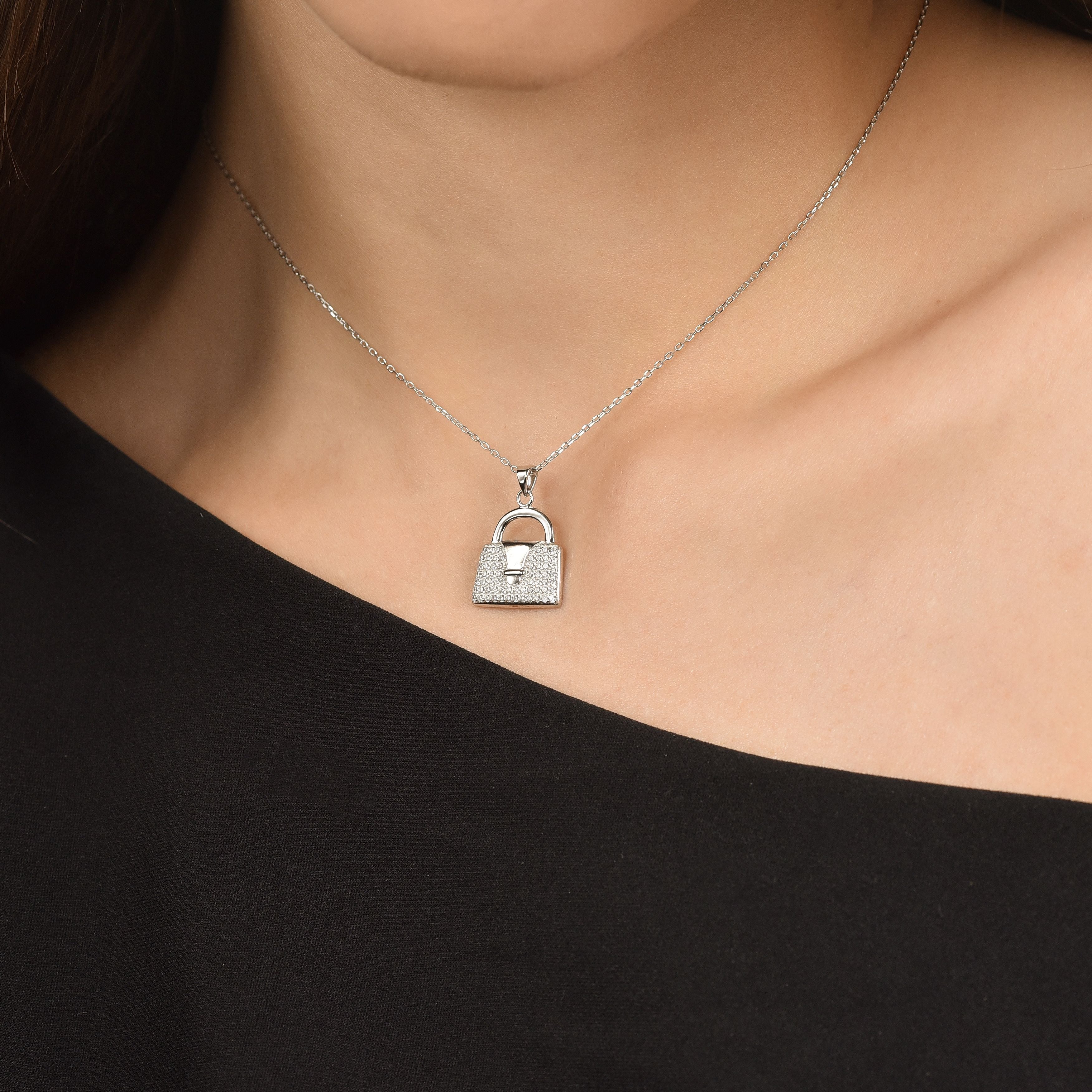 COLLANA IN ARGENTO CON CIONDOLO A BORSETTA CON ZIRCONI BIANCHI
