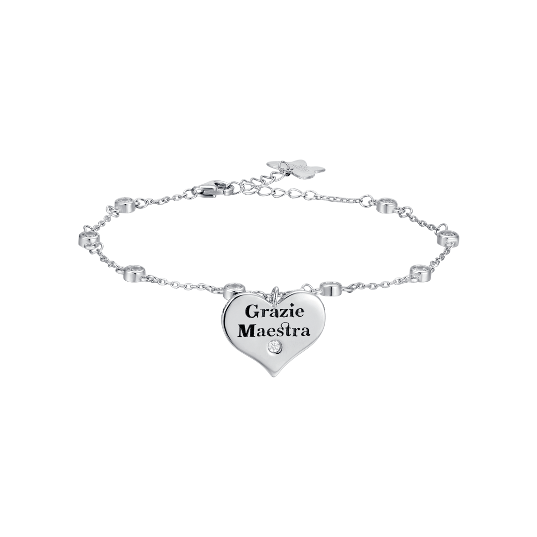 BRACCIALE IN ARGENTO CON CUORE GRAZIE MAESTRA