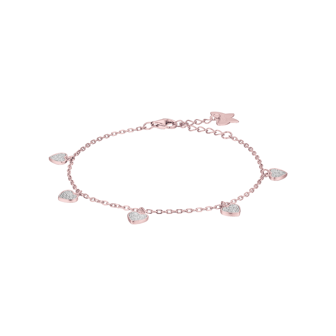 BRACCIALE IN ARGENTO IP ROSE CON CUORI CON CRISTALLI BIANCHI