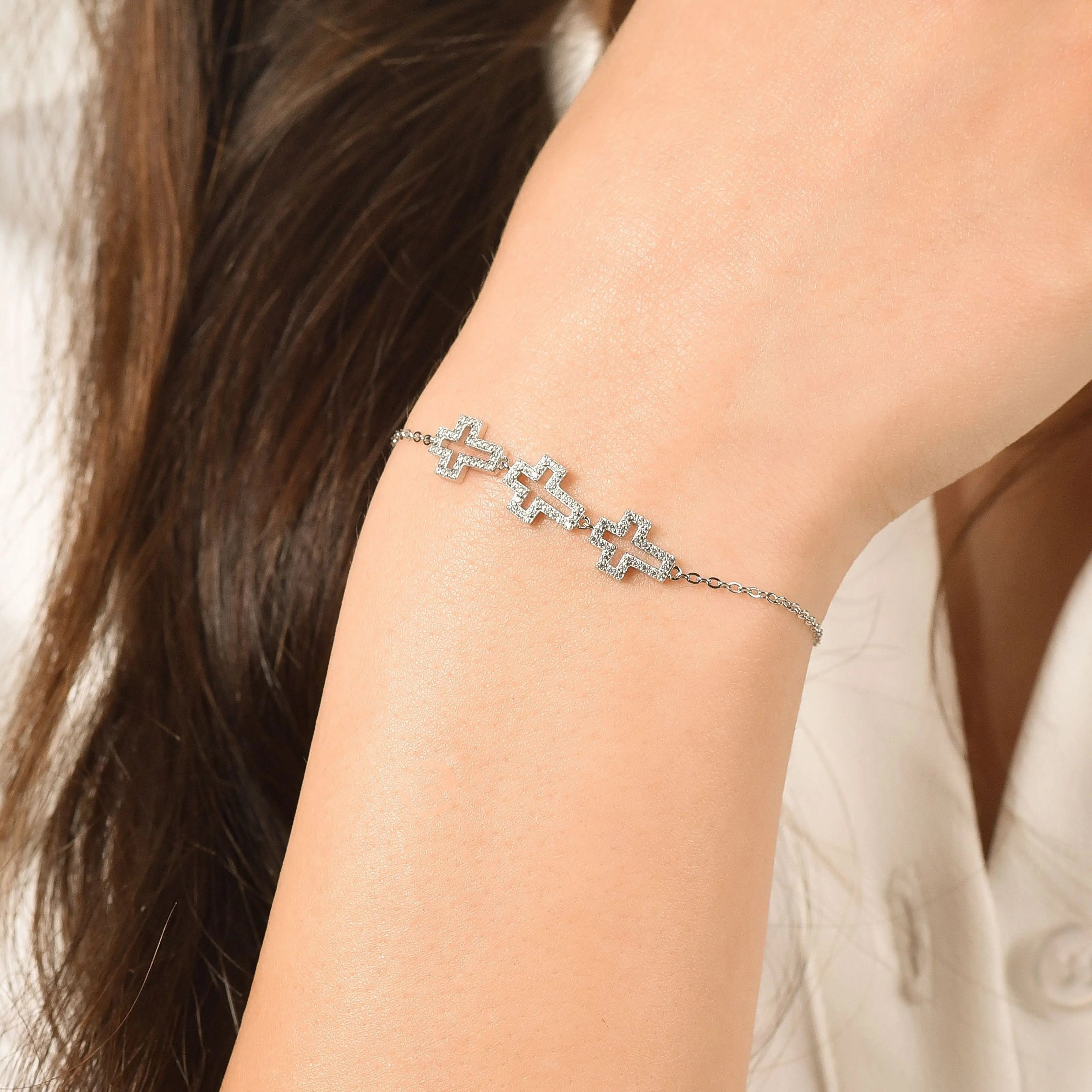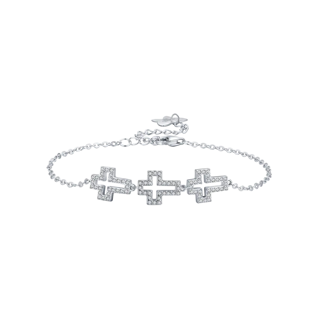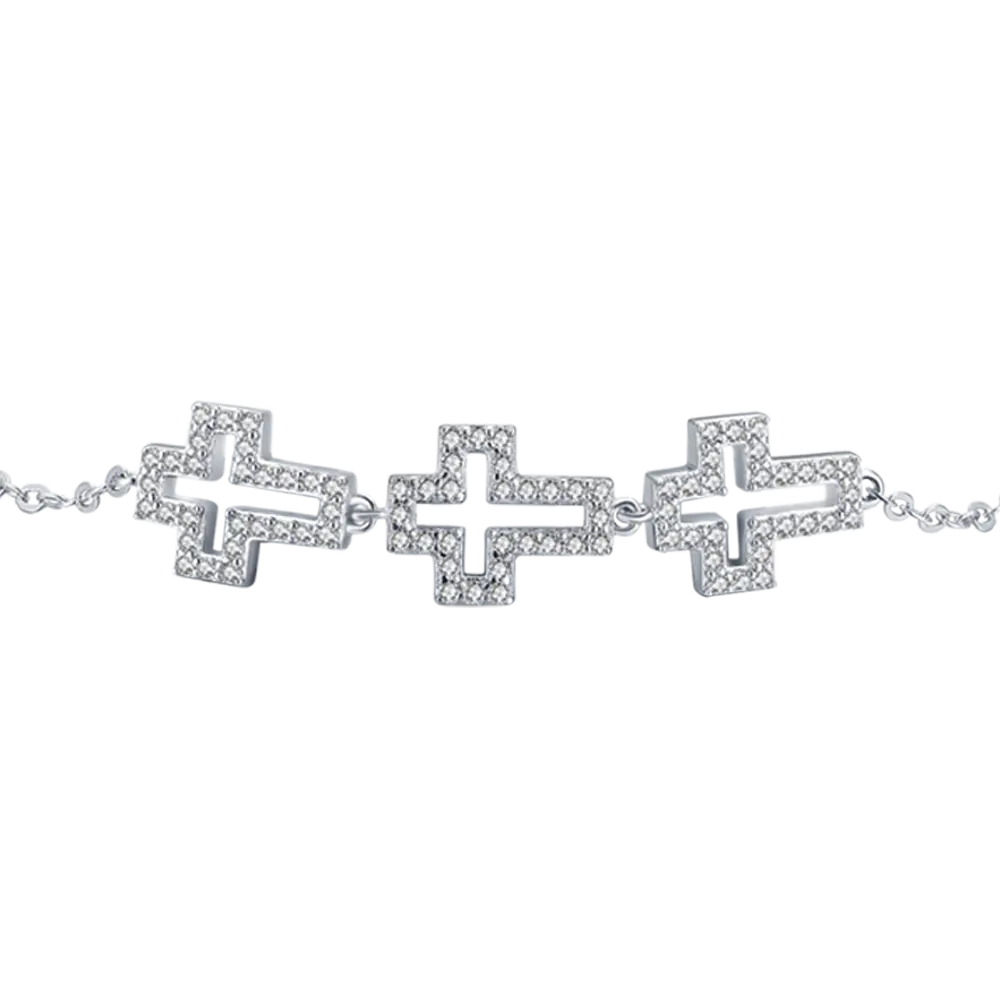 BRACCIALE IN ARGENTO CON CROCI CON CRISTALLI BIANCHI