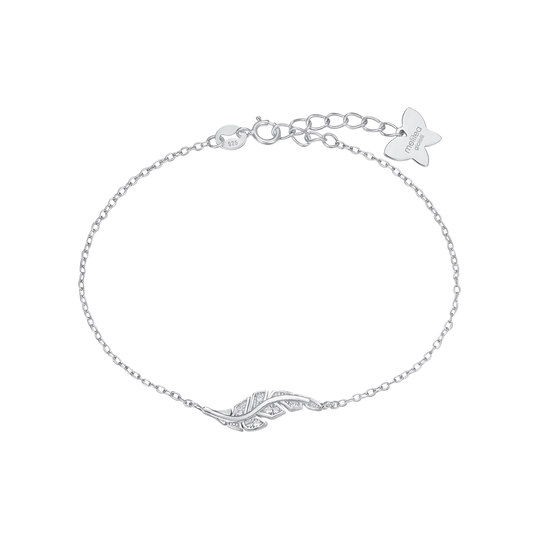 BRACCIALE IN ARGENTO CON PIUMA CON CRISTALLI BIANCHI
