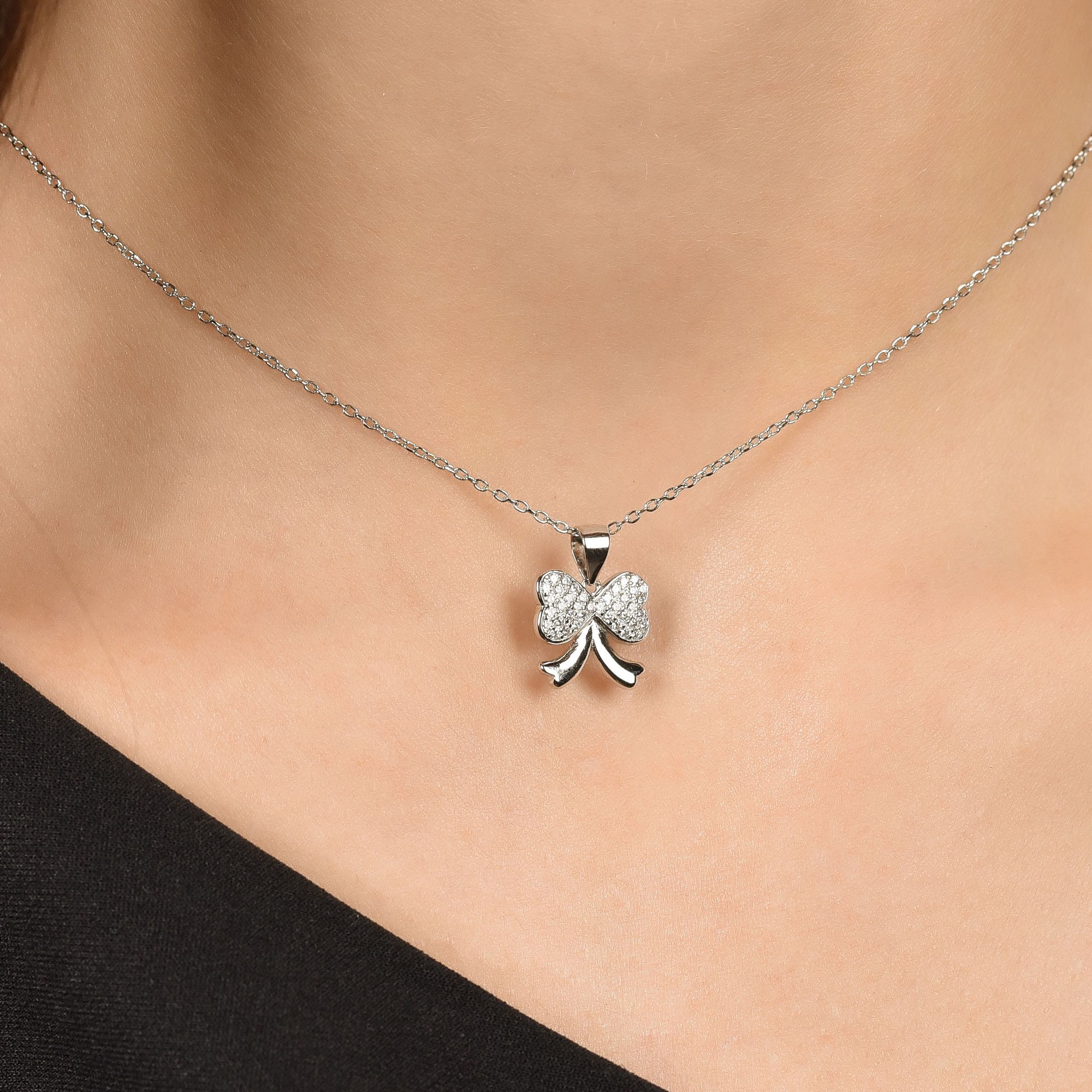 SILVER BOW NECKLACE WITH WHITE CRYSTALS