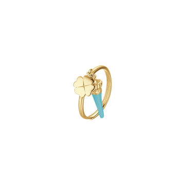 IP GOLD SILVER RING WITH TURQUOISE HORN AND FOUR-LEAF CLOVER