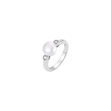 SILVER ADJUSTABLE RING WITH PEARL AND WHITE CRYSTALS