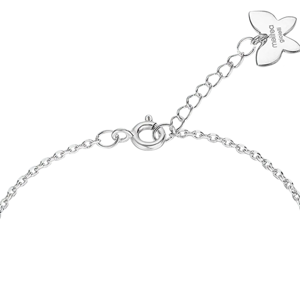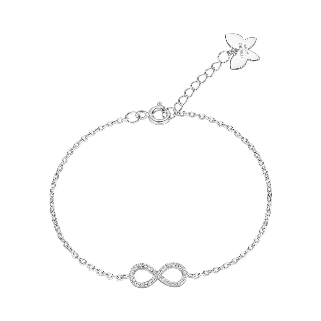 Silver infinity bracelet with white crystals. Length: 16 + 3 cm. Represent eternal connection and luminous beauty with this elegant silver bracelet, embellished with the infinity symbol enhanced by sparkling white crystals. Infinity, with its endless shape, symbolizes enduring love and a connection that knows no bounds, while the expertly placed white crystals add a touch of light and sparkle.