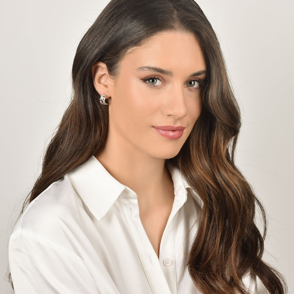 Silver earrings with white cubic zirconia. Element size: 9 x 16 mm. Earrings are an essential accessory for every woman, and this silver version with white cubic zirconia is the perfect choice for those seeking elegance and versatility. They can be worn with any outfit and are suitable for any occasion, from everyday to special evenings.