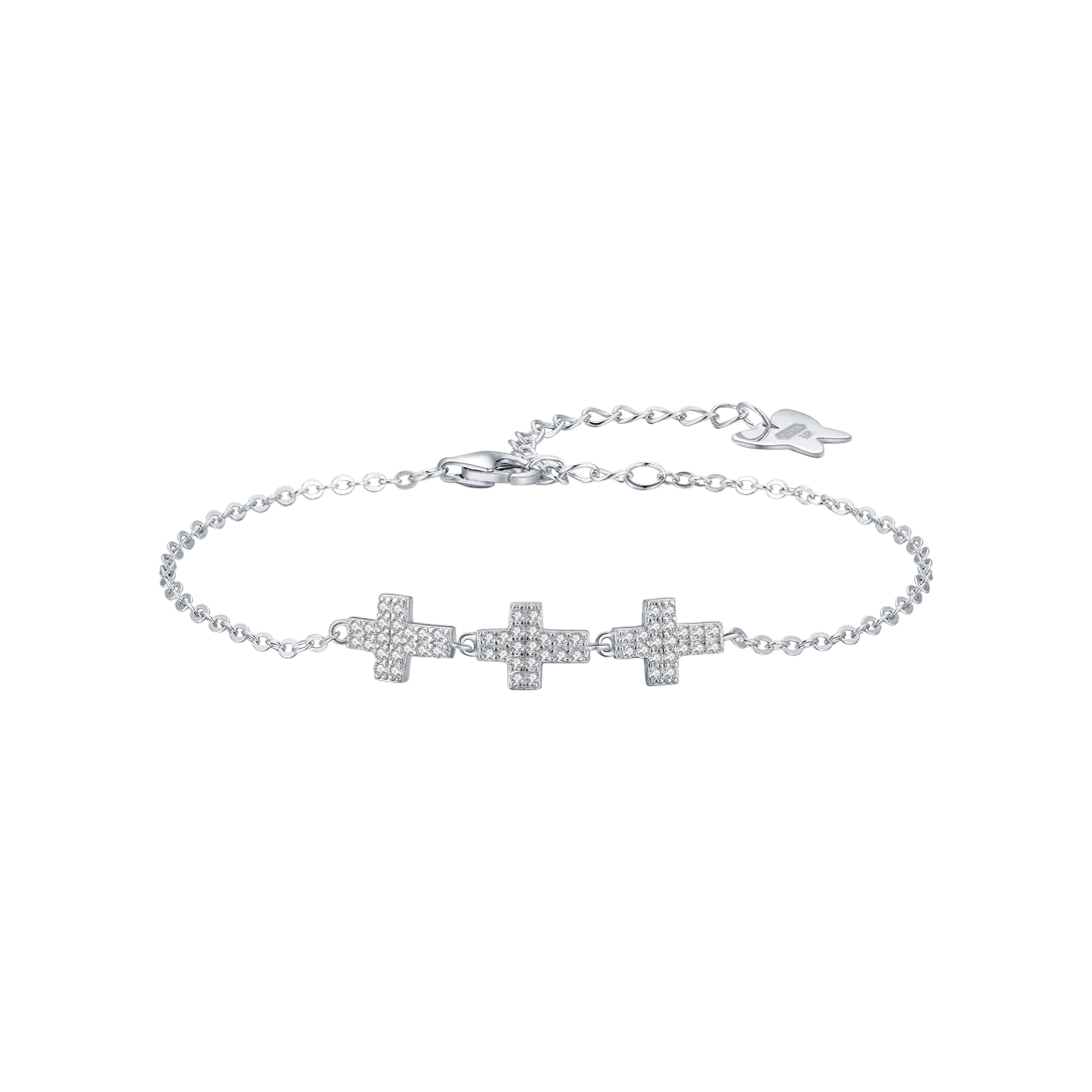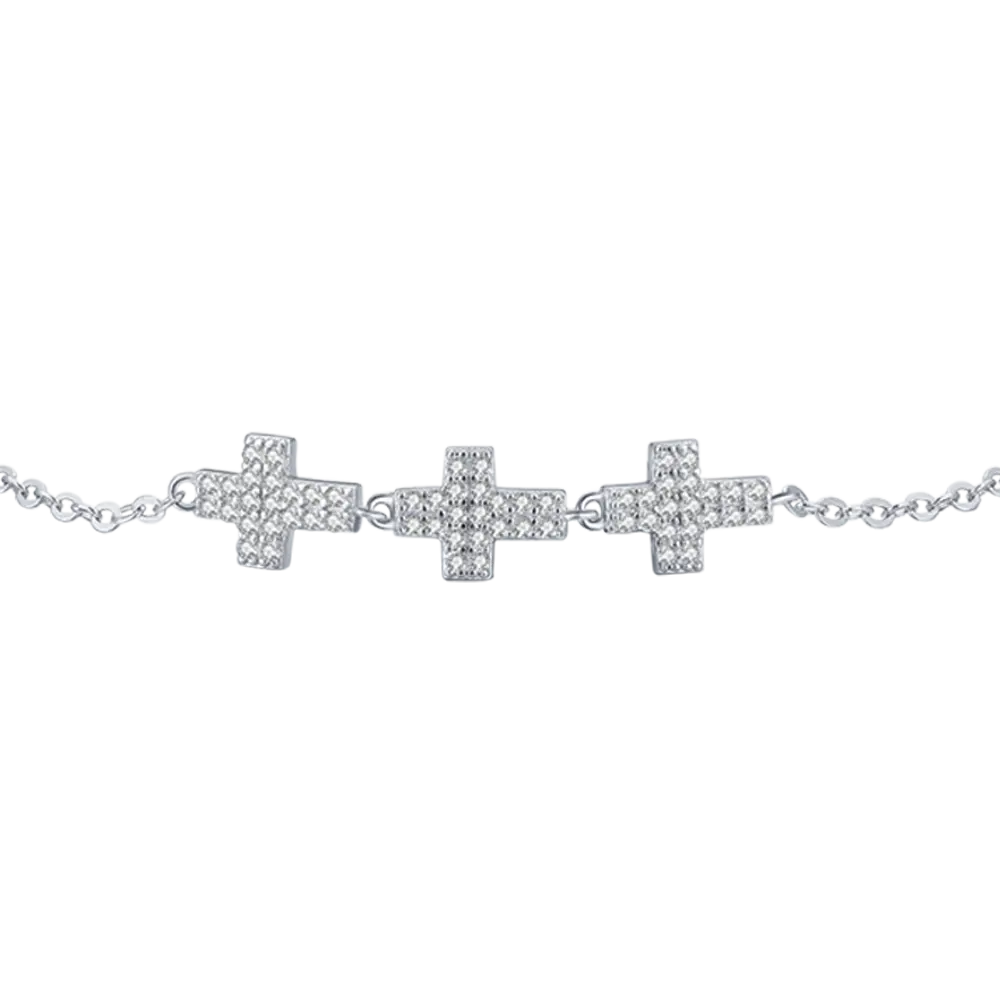 SILVER BRACELET WITH CROSSES WITH WHITE CRYSTALS