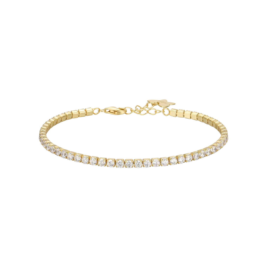 IP GOLD SILVER TENNIS BRACELET WITH WHITE CUBIC ZIRCONIA