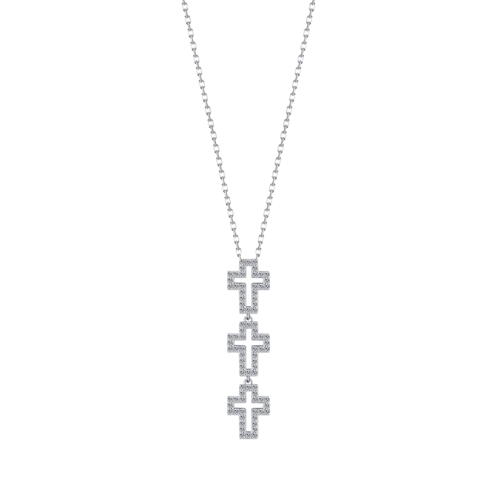 SILVER NECKLACE WITH CROSSES WITH WHITE CRYSTALS