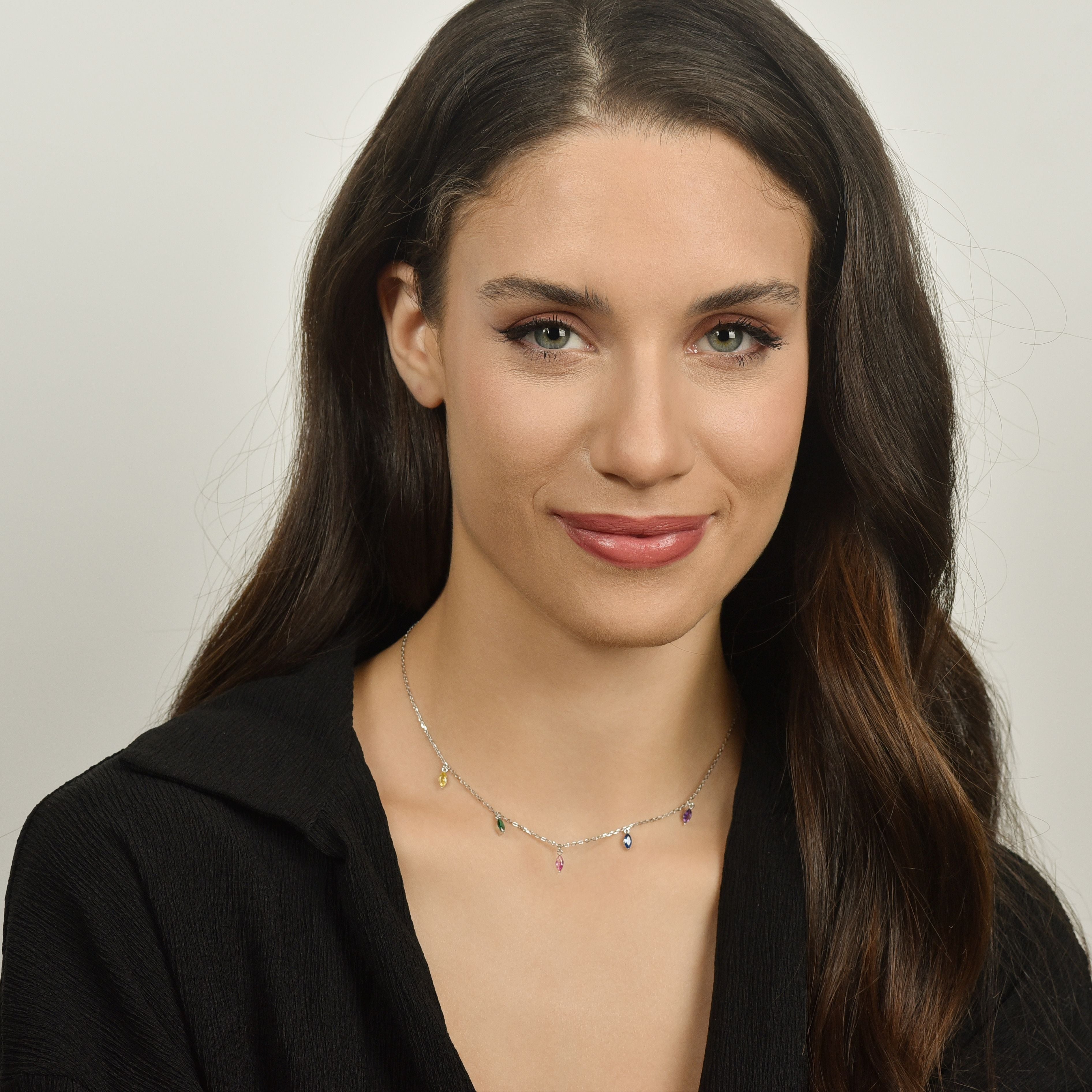 SILVER NECKLACE WITH MULTICOLOR CUBIC ZIRCONIA
