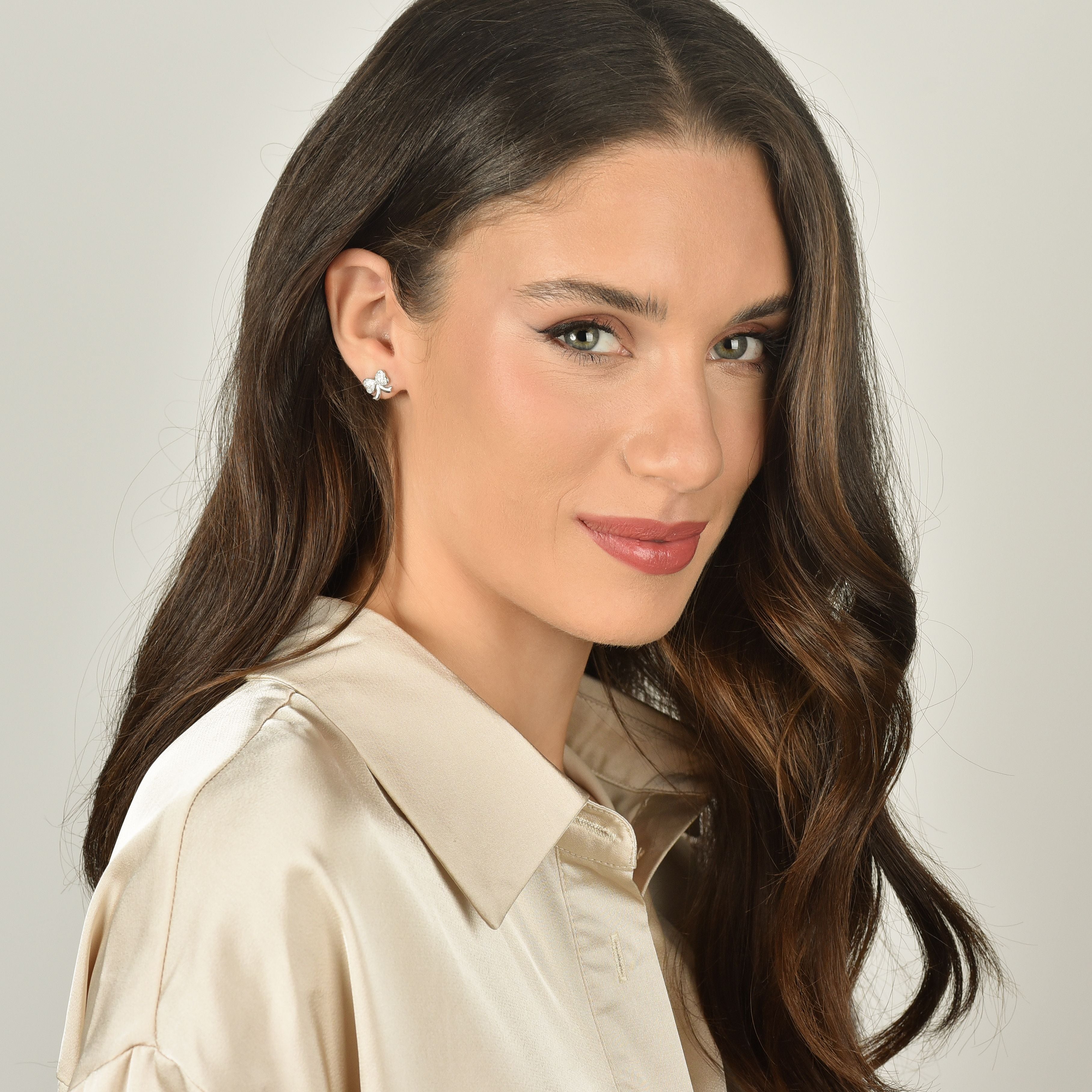 SILVER BOW EARRINGS WITH WHITE CRYSTALS