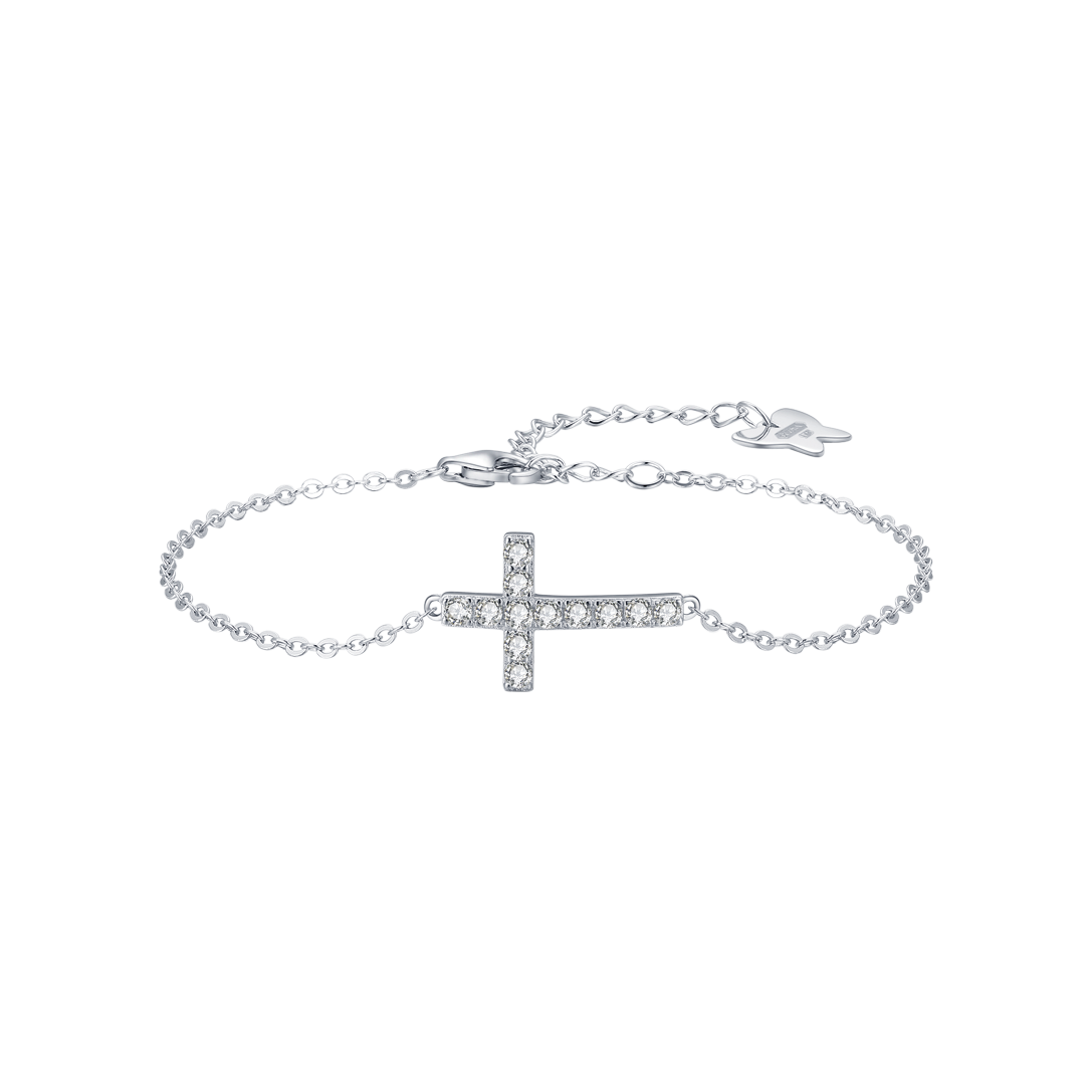 SILVER CROSS BRACELET WITH WHITE CRYSTALS