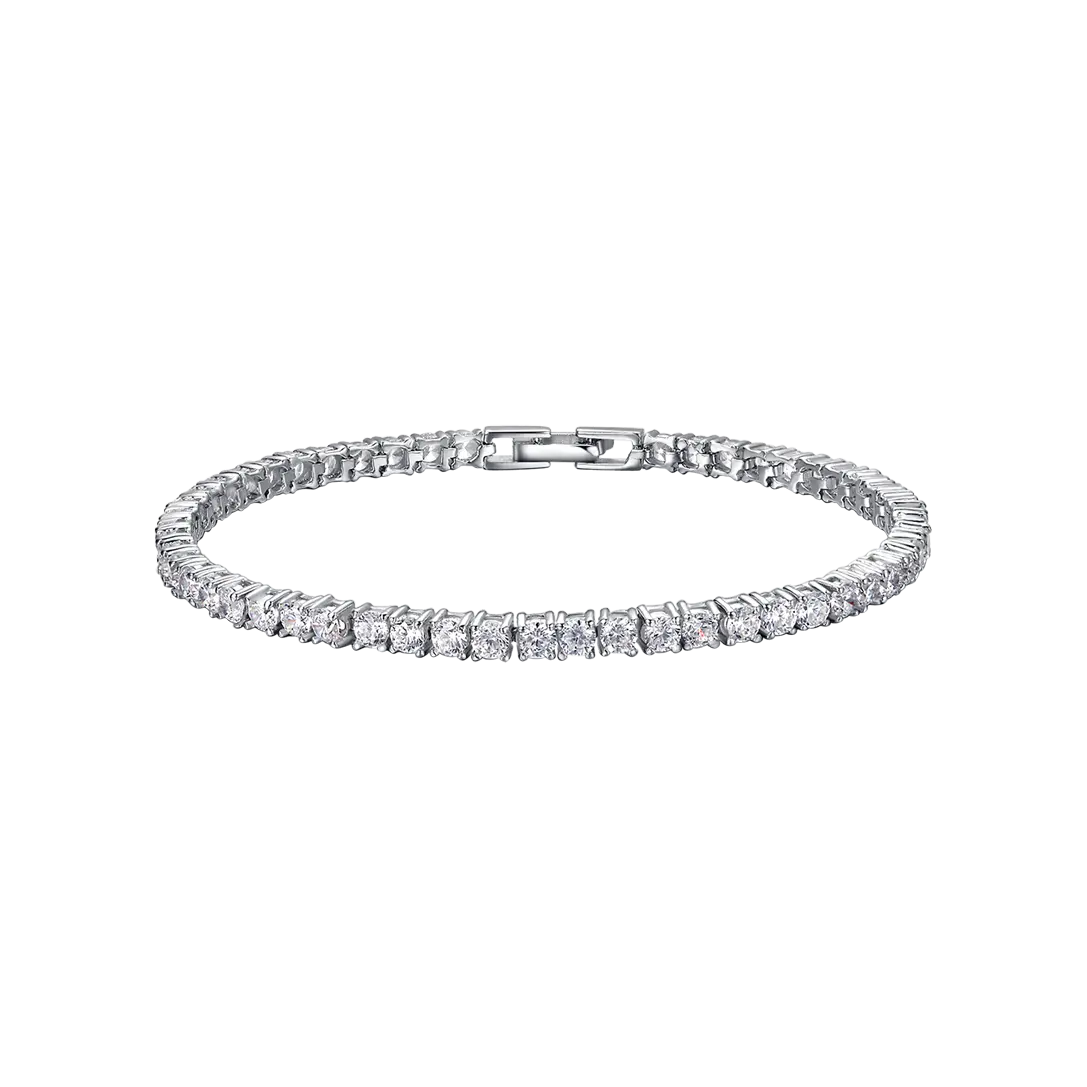 Silver Tennis bracelet with 3 mm white cubic zirconia. Length: 16 cm. The tennis bracelet is more than just a piece of jewelry: it represents a symbol of elegance, perseverance and connection. The tennis bracelet represents grace, elegance and inner strength.