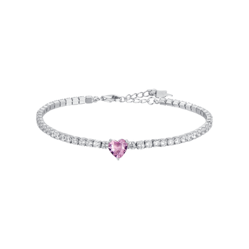 SILVER TENNIS BRACELET WITH WHITE CUBIC ZIRCONIA AND PINK HEART